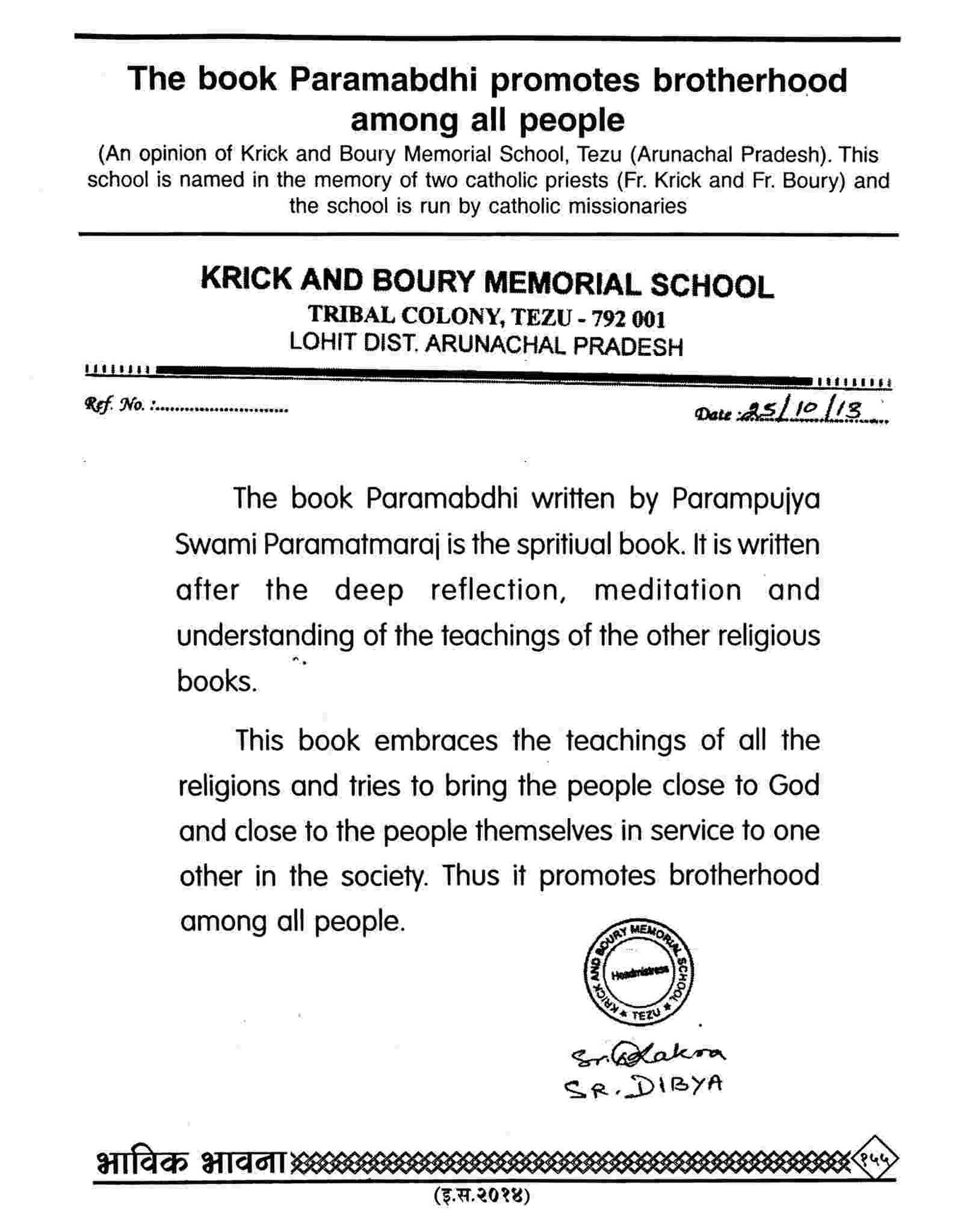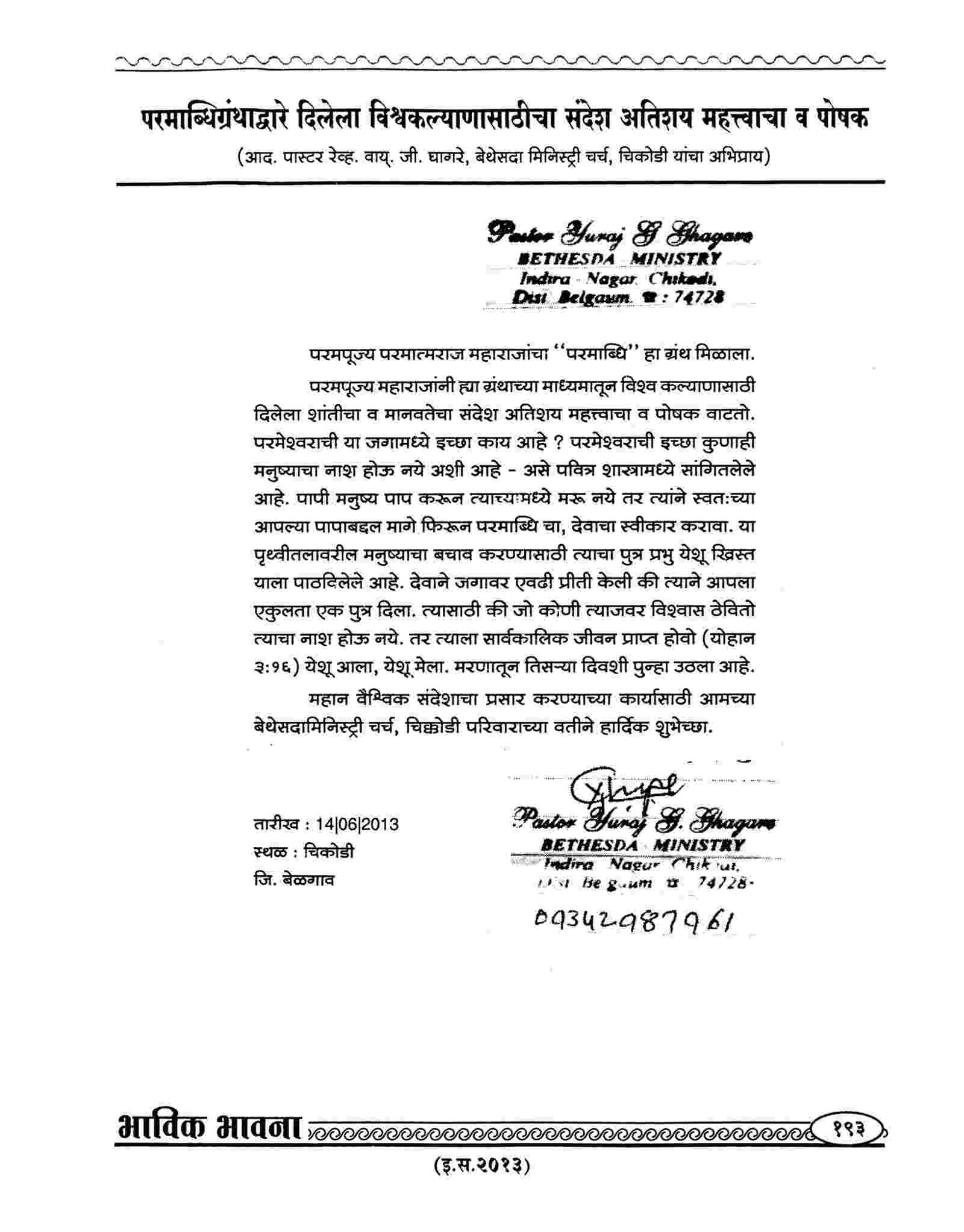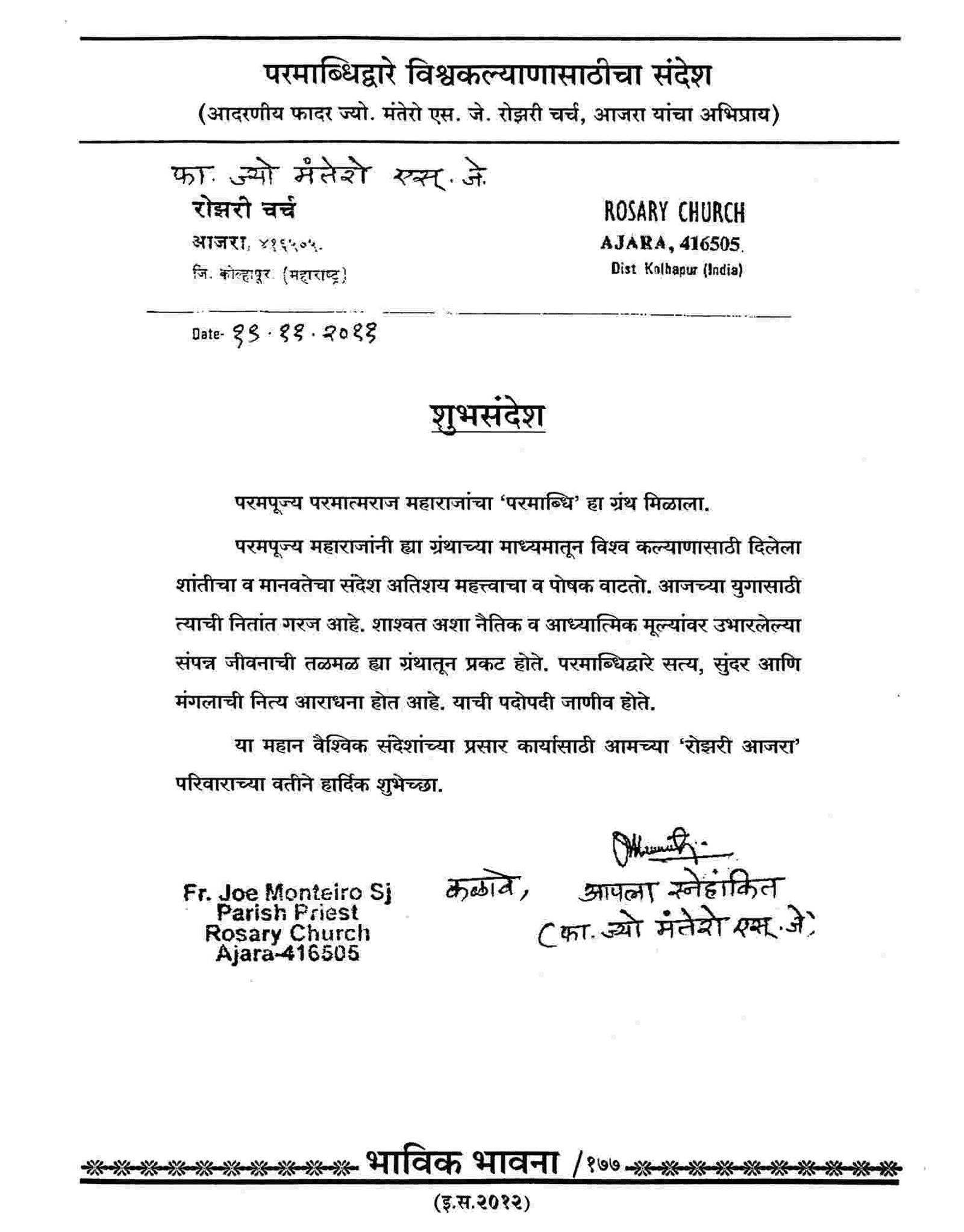 (Many other articles of the Christian churches and authorities can be seen in the Bhavik Bhavana Periodicals of the various years)