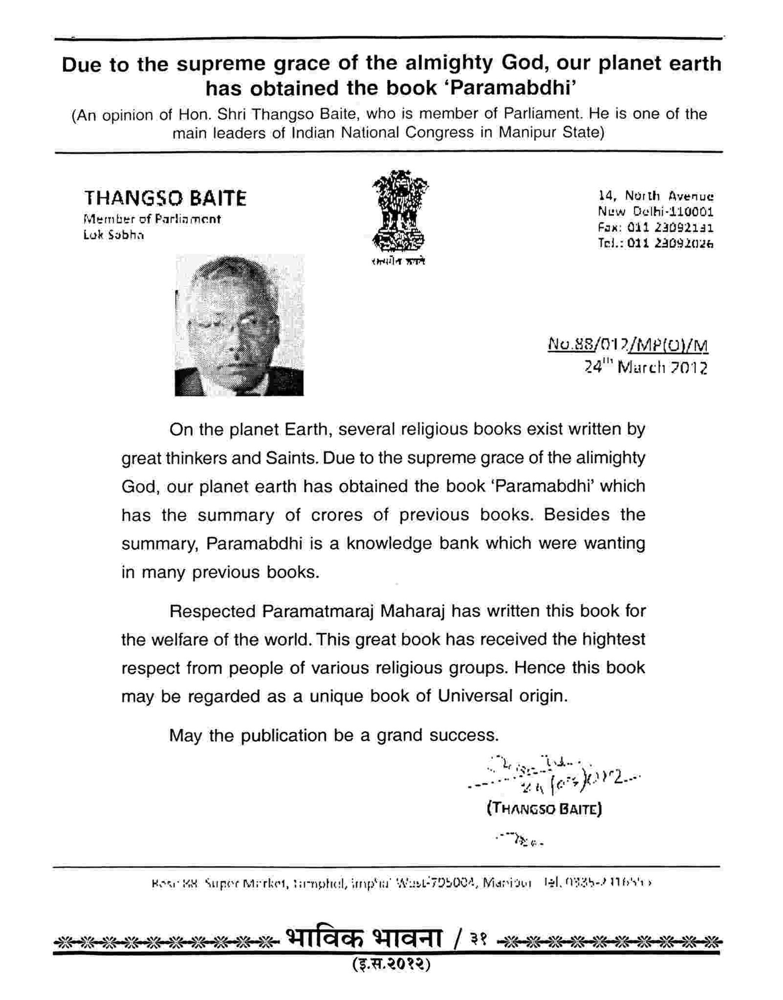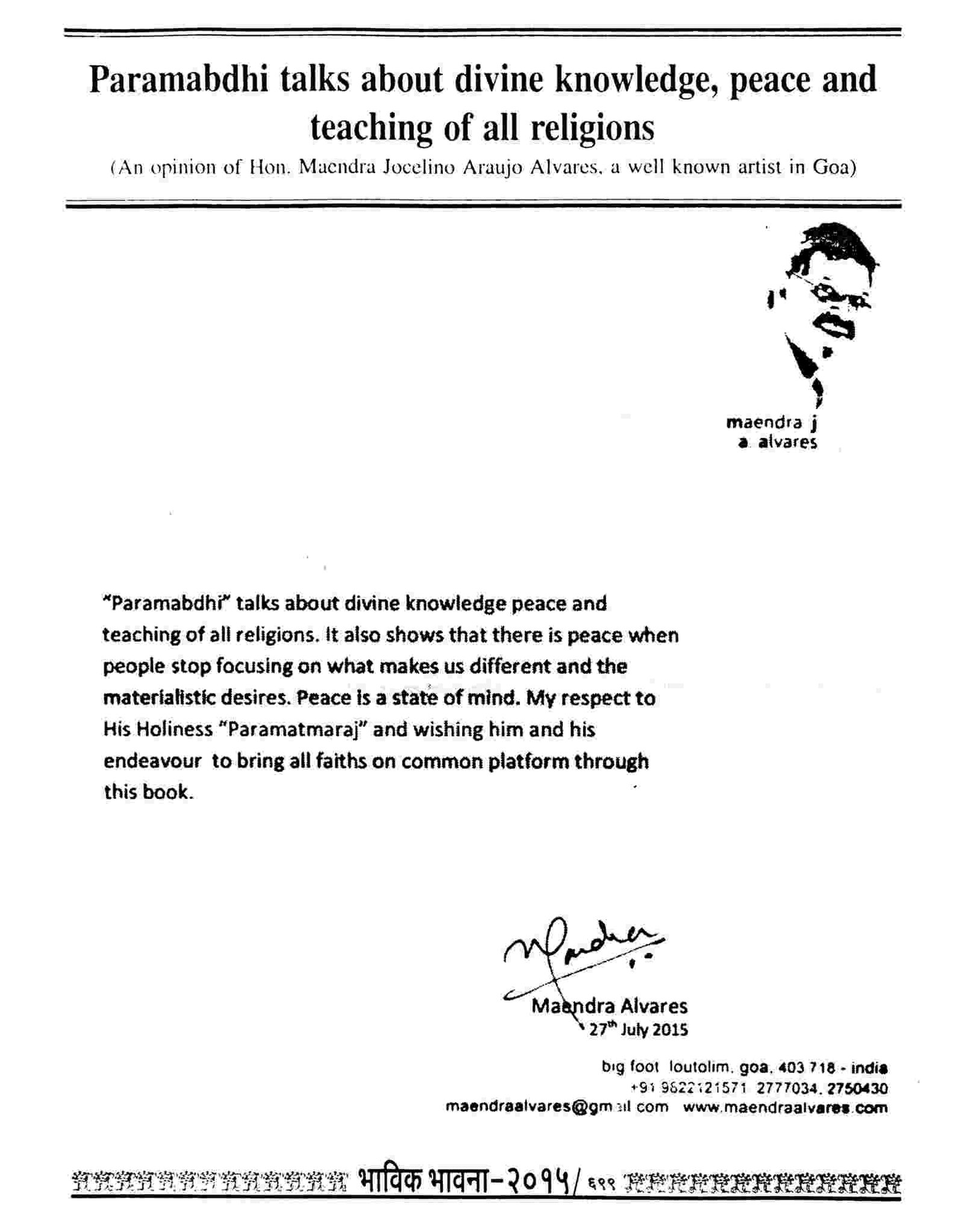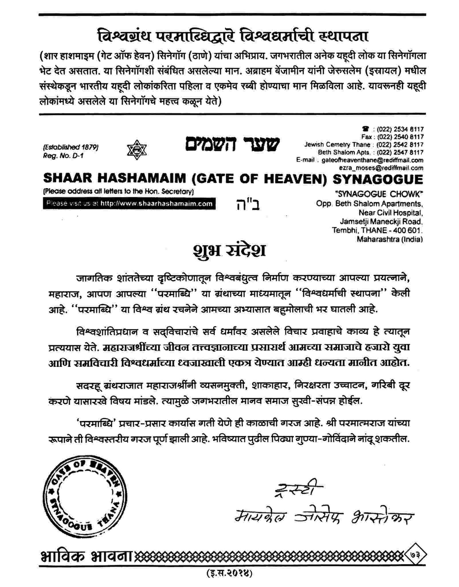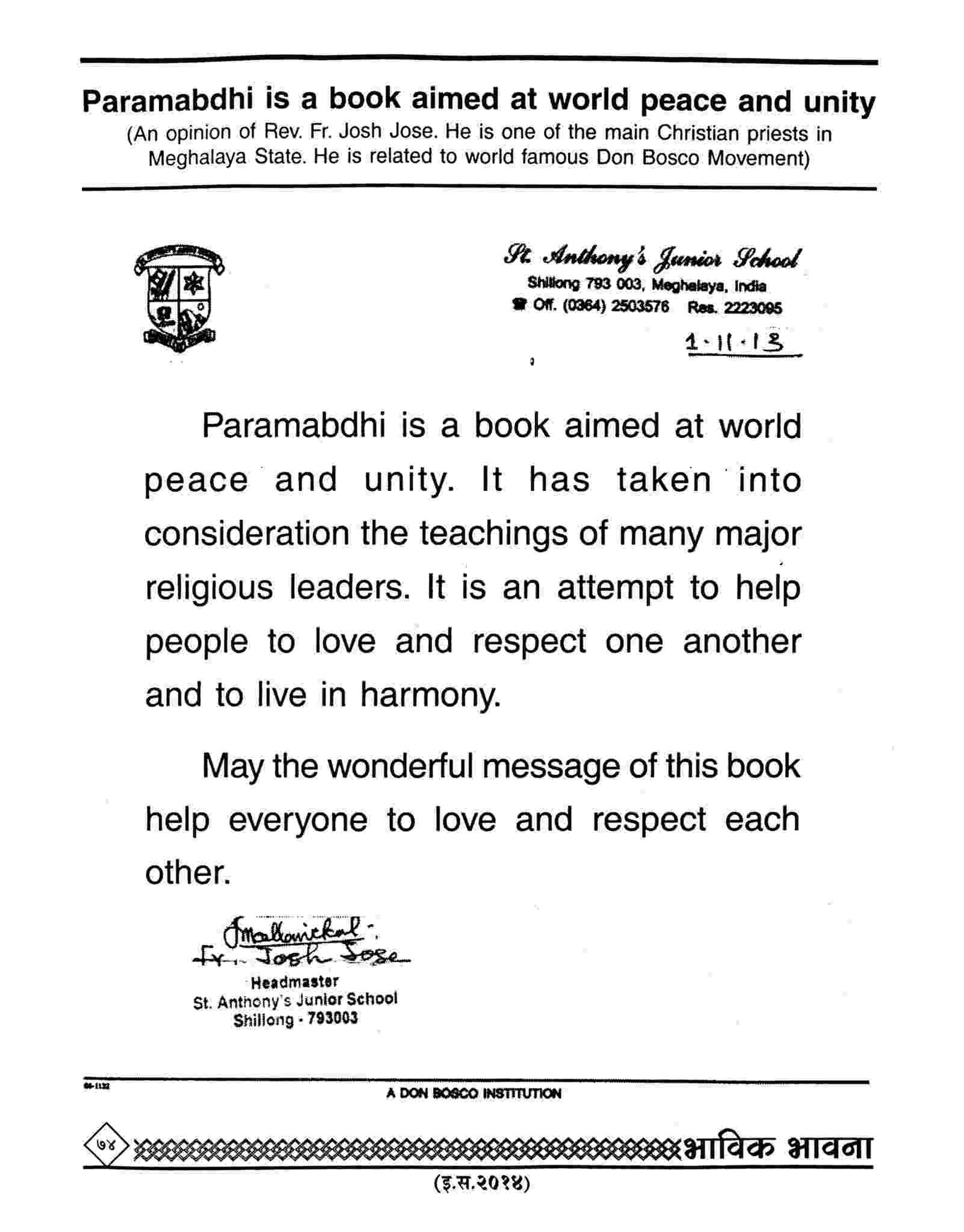 (Many other articles of the Christian churches and authorities can be seen in the Bhavik Bhavana Periodicals of the various years)