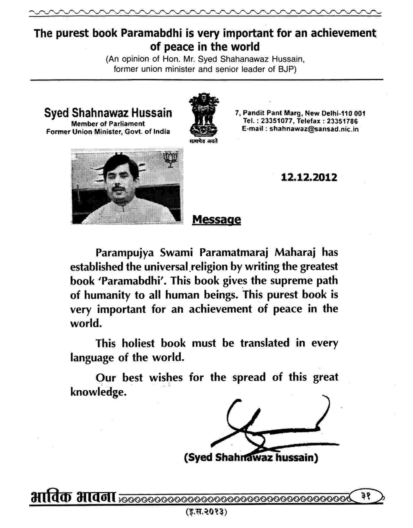 (In this website, only some articles of Muslim scholars are given. More than hundred articles written by Muslim scholars can be read in the Bhavik Bhavana Periodicals of various years)